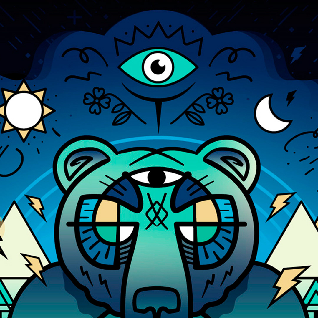 Music festival event promotional material featuring custom illustration & symbols